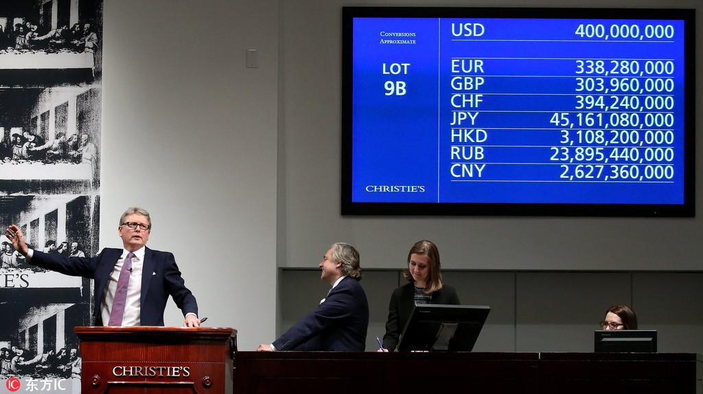 據美聯社報道,當地時間15日晚上7點50分,在紐約佳士得拍賣行,原本估價1億美元的達芬奇作品《救世主/Salvator Mundi》以4.5億美元(≈30億人民幣)的價格被拍出。