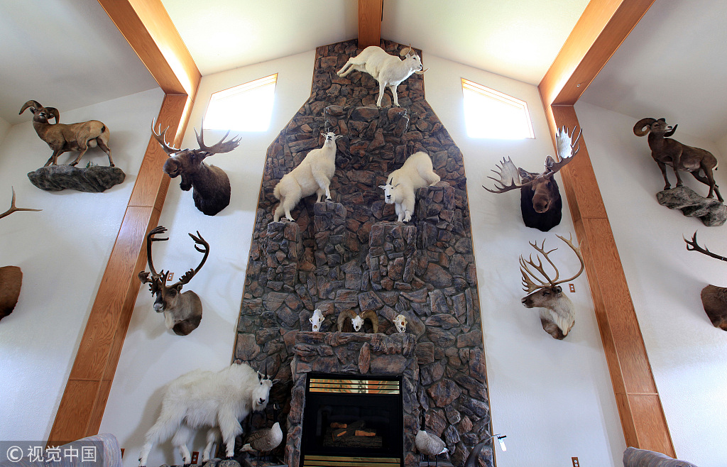 (美國一個獵人家庭的“戰利品”展示,圖源:VCG)