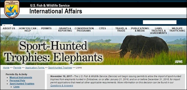 當地時間16日,美國內政部魚類和野生動物管理局官方網站發佈公告稱,美國政府解除奧巴馬時期對獵象製品進口的禁令,同意從津巴布韋和贊比亞兩國進口獵象製品,並開始發放進口牌照。