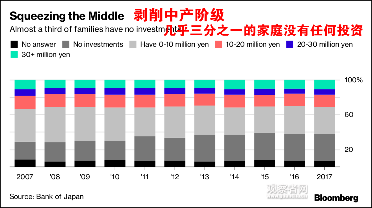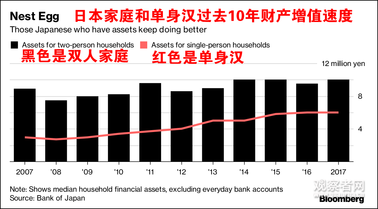 而且,彭博社指出,日本的人口老齡化越來越快,那些沒有任何金融資產的家庭也會越來越多。日本央行的調查發現,日本有38%的兩口或者以上的家庭非常擔憂在退休後的生活,另外44%的家庭比較擔憂未來的人生。