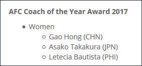 【觀察者網綜合】亞足聯網站11月18日公佈了2017年度各最佳獎項候選名單,中國足協獲得了亞足聯夢想亞洲獎、亞足聯基層足球獎的2項候選提名。此外,中國U16女足主帥高紅獲得了亞足聯年度最佳教練大獎的候選提名。而在最重磅獎項亞洲足球先生的提名中,武磊獲得了提名。