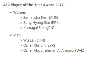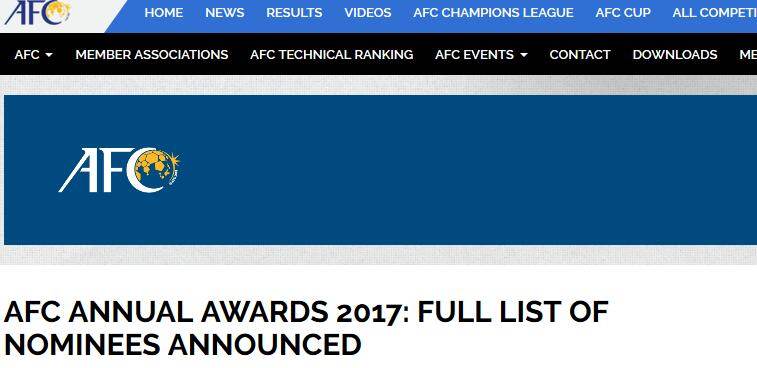 亞足聯各年度獎項候選公佈 中國足球獲4提名