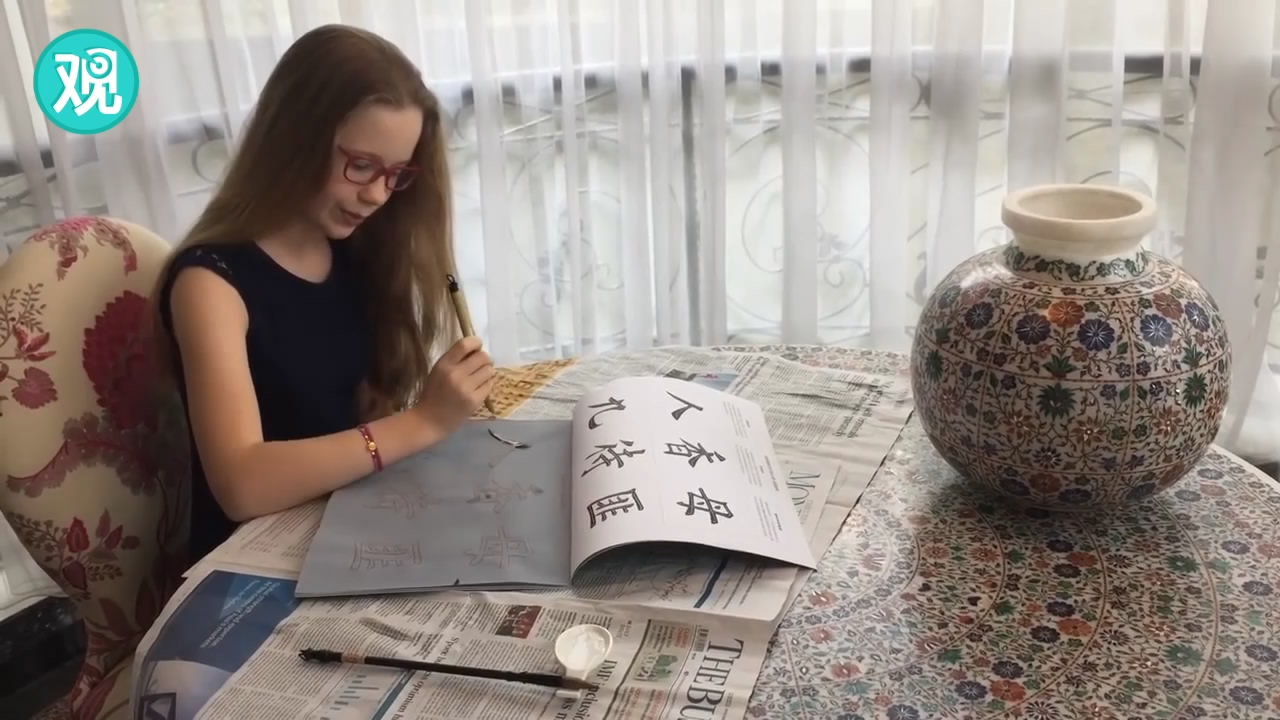 大女兒快樂羅傑斯秀書法(視頻截圖)