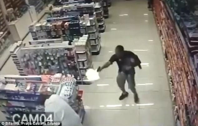 當地時間上週六下午,警官拉斐爾·索薩(Rafael Souza)與他的妻兒在巴西坎普林普市中心,他們準備買點藥品,於是進入了一家藥店,就在此時,歹徒破門而入。