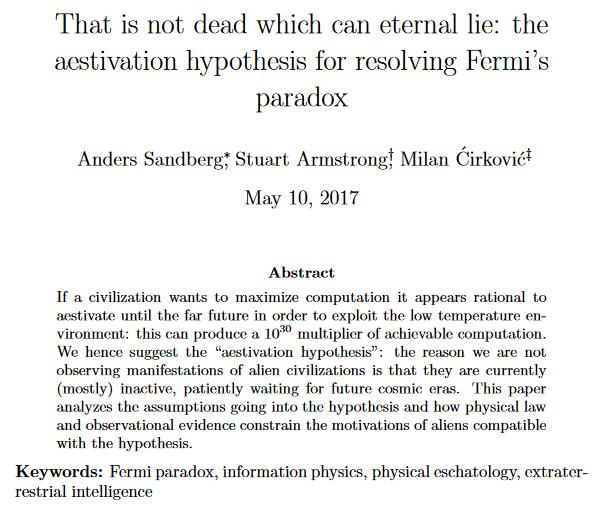 牛津學者SETI論文《不死長眠:解決費米悖論的夏眠假説》