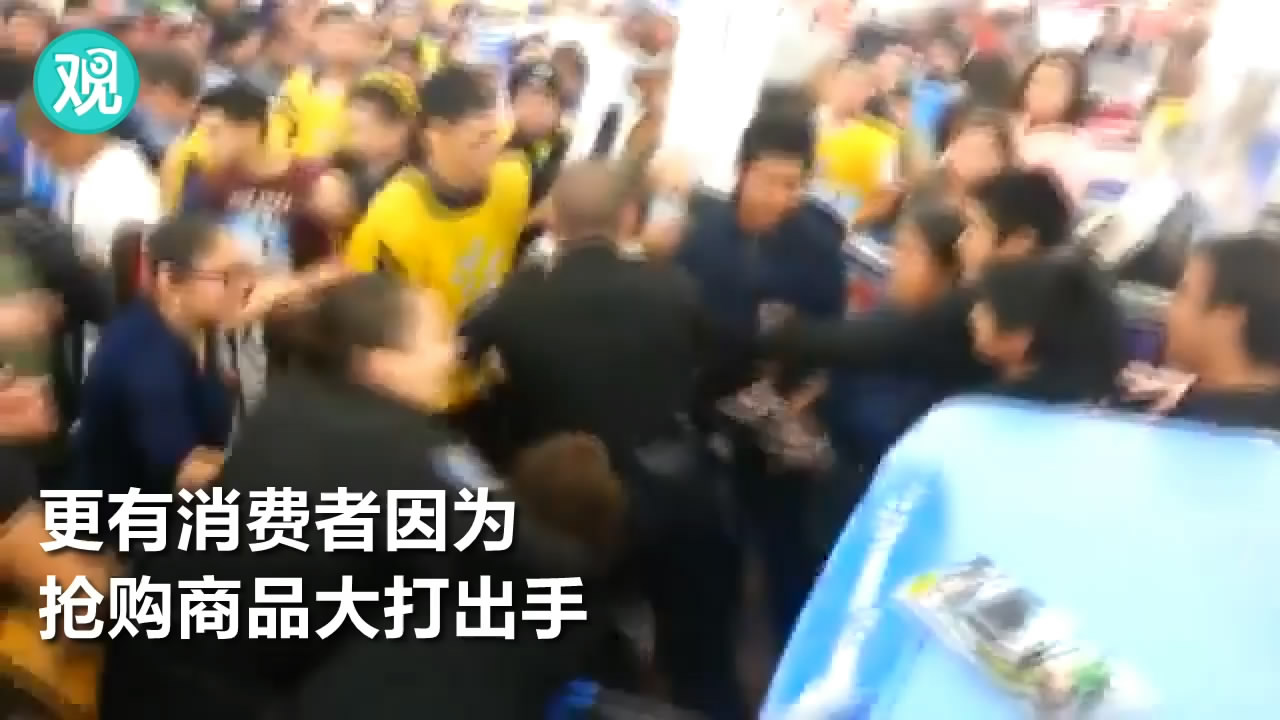 眾多消費者為了搶購商品,有的提前一天就來到商場門前排隊等候,更有消費者為了爭搶一件緊俏的商品而大打出手。