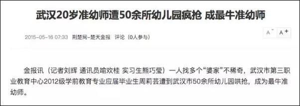 與幼教畢業生被瘋搶相對應的是,目前高校應屆畢業生的數量遠遠滿足不了幼師的缺口。