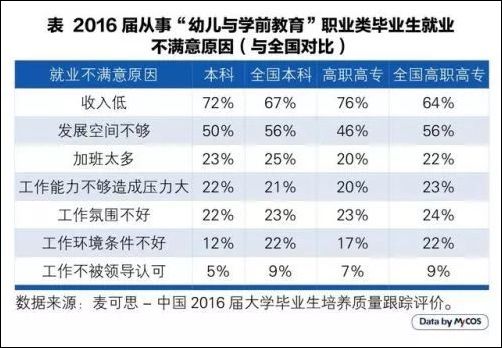 有媒體調查顯示,幼師專業的大學生有的是父母幫選的專業有的是被調劑,畢業就轉行現象不在少數。此外,有調查顯示,“壓力大”、“工資低”是幼師頻頻“跳槽”“轉行”的最主要的原因。