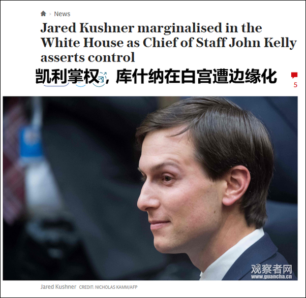 而今年7月,約翰·凱利開始擔任白宮幕僚長,上任伊始就要求總統給他絕對權力整肅白宮西翼(白宮核心,總統及幕僚辦公室所在地),要求包括庫什納和伊萬卡在內的所有人見特朗普必須通過其允許。多名現任和前任白宮官員認為,在“凱利時代”,最受影響的就是庫什納,隨便走進橢圓形辦公室,向總統進行政策遊説,或者向他講述八卦消息的日子已經一去不復返。