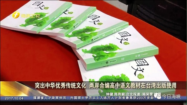 據台灣《旺報》此前報道,由福建師大兩岸文化發展研究中心、福建師大文學院和台灣“中華文化教育學會”三方合編的兩岸高中語文教材,這學期已被台北萬芳高中、達人女中、高雄前鎮高中和高雄師大附中等多所學校使用。