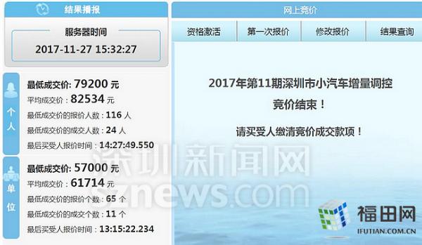 【觀察者玩汽車頻道報道】2017年第11期深圳市小汽車增量調控競價於11月27日進行,個人車牌平均成交價已經達到82534元,競拍價格再創新高,比上月67408元上漲22.4%。