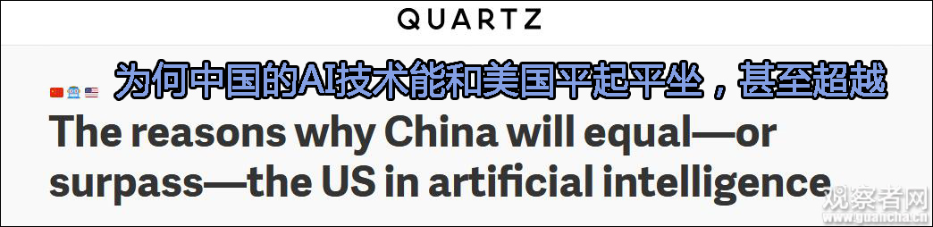 【編譯/觀察者網 徐乾昂】“長久以來,美國人一直相信自己是世界尖端科技的引領者。不過,現在有足夠的理由相信,在人工智能領域(以下簡稱AI),中國正悄悄接近美國,甚至將其超越,”美國財經網站Quartz這麼寫道。