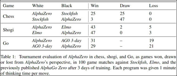 由於日本將棋更為複雜(以及研究人員關注的少),直到2017年冠軍程序Elmo才戰勝了人類高手。這個Elmo應該實力還比較弱,所以最終被AlphaZero以90勝2和8負戰勝了。AlphaZero還會輸幾局,但這是因為訓練時間不長,已經能夠説明問題就行了。