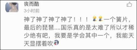 在節目中,他不但用精妙的技能征服了大家的心,而且還熱情地表白民族文化,為國樂打call:
