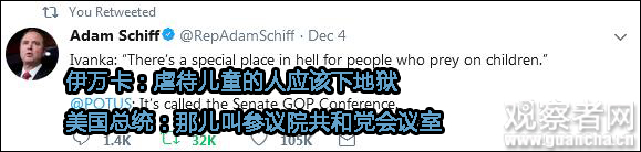 對於父女兩人這樣矛盾的口徑,民主黨裔的眾議員亞當·希夫(Adam Schiff)則在社交媒體上笑稱,“莫非伊萬卡口中的‘地獄’,説的是共和黨人的會議桌?”