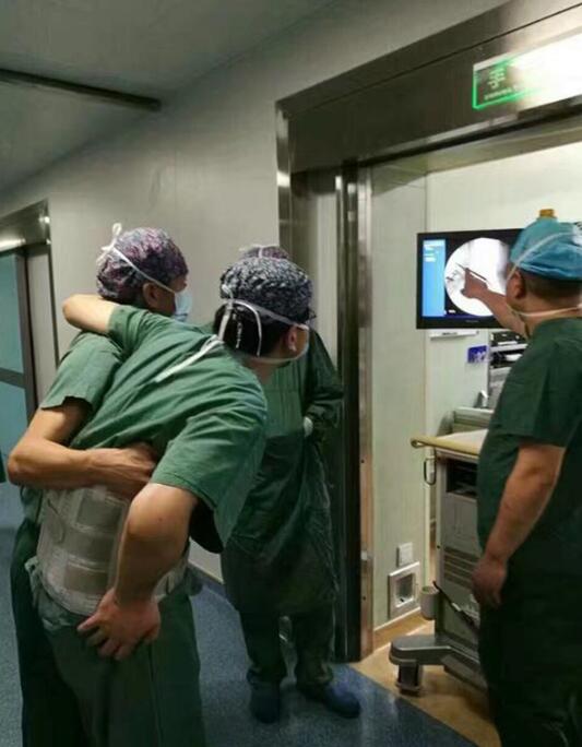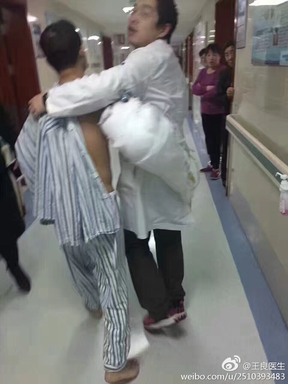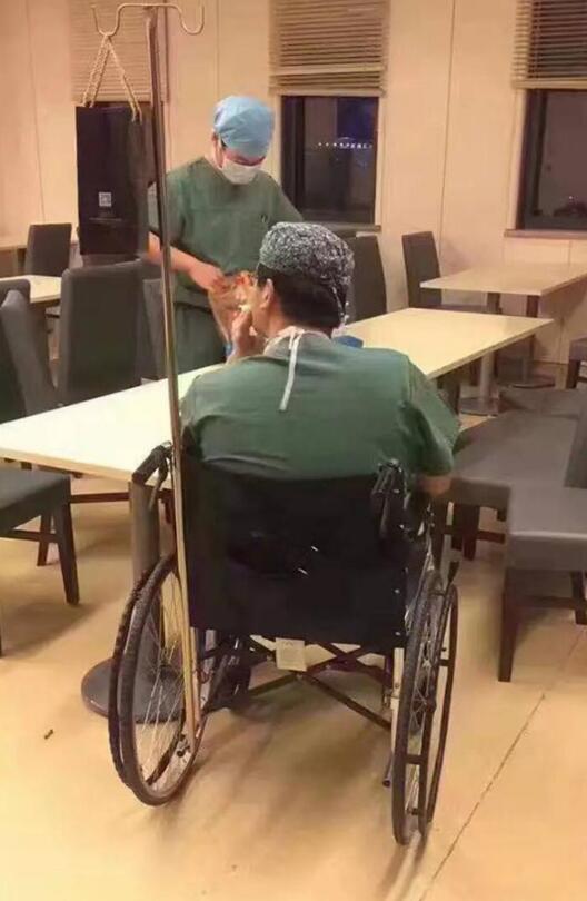 同樣在這家醫院,前不久還發生過一件很感人的事。據中國之聲2016年12月31日報道,一位醫生綁着護具被攙扶進手術室的照片刷屏了,這位醫生名叫苗旭東,是這家醫院的足踝外科主任醫師。