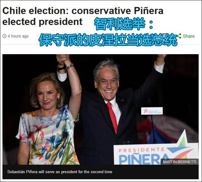 然而文章中説,此次皮涅拉當選,是智利“向右轉“的重要一步。