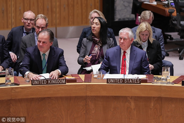 當地時間2017年12月15日,美國紐約,聯合國安理會15日就朝鮮半島問題召開部長級會議。聯合國秘書長和中國、瑞典、俄羅斯等國代表紛紛呼籲有關各方儘快恢復對話談判,推動實現朝鮮半島無核化和可持續和平。(@視覺中國)