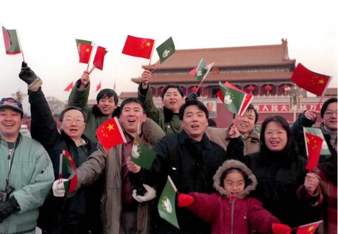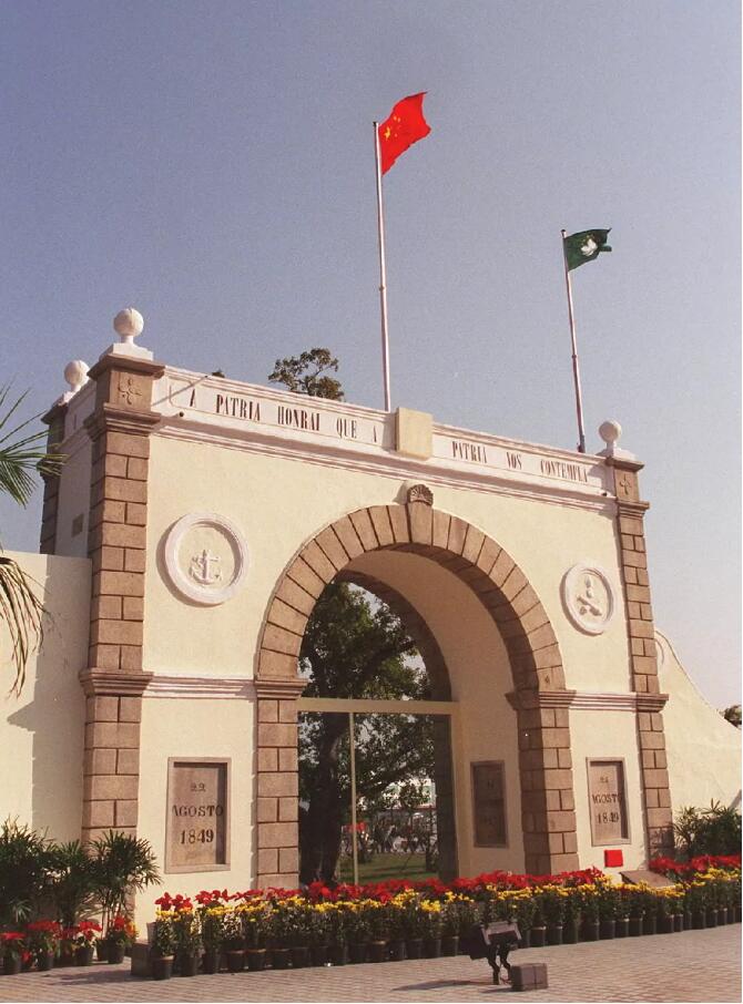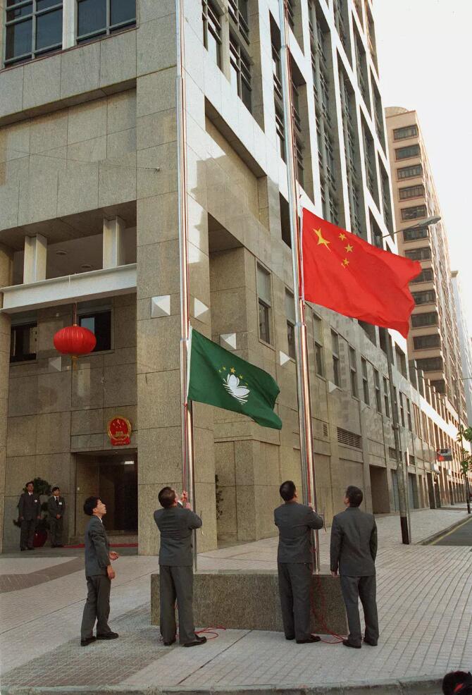 1999年12月20日是澳門迴歸祖國的第一天。當天凌晨,中華人民共和國國旗和澳門特別行政區區旗在澳門與珠海拱北之間的關閘升起,代替了長期在此懸掛的葡萄牙國旗。新華社記者 張肄文 攝