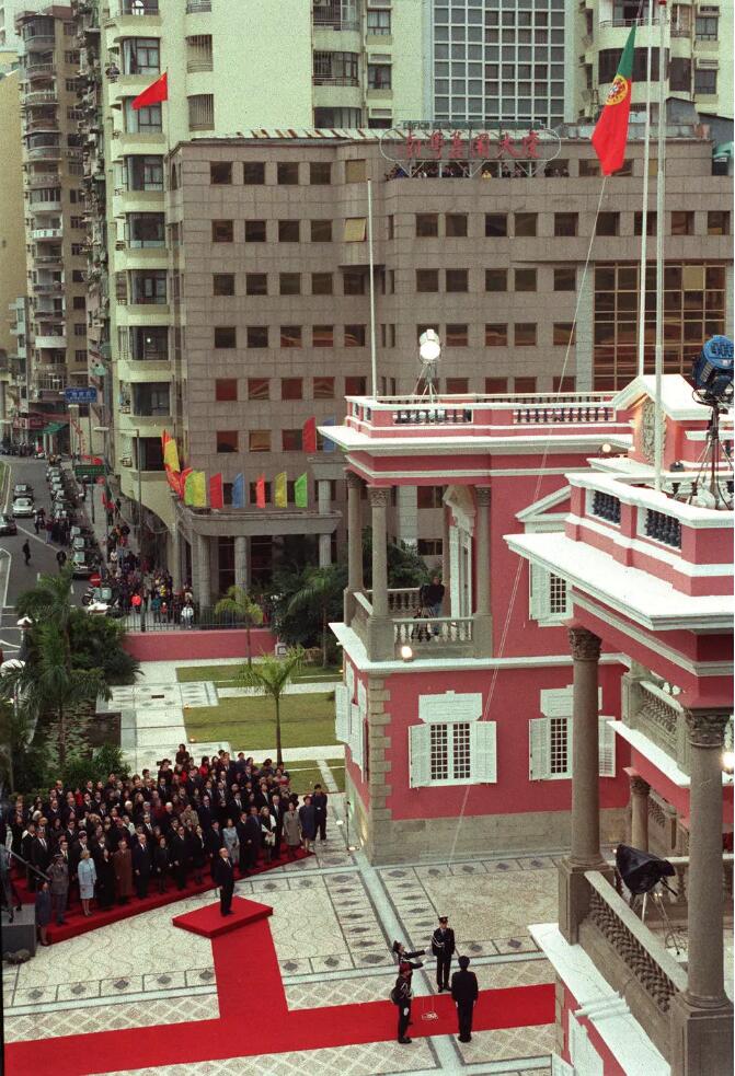 12月19日下午5時許,葡萄牙國旗最後一次從澳門總督府大樓降落,標誌着葡萄牙在澳門統治即將結束。20日凌晨,中國政府將恢復對澳門行使主權。譚進 攝