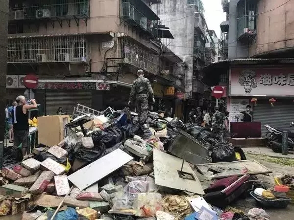 今年8月,澳門遭遇53年來最強颱風“天鴿”正面襲擊,駐澳門部隊迅疾救援,連續奮戰,圓滿完成災後垃圾清理任務。