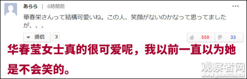 日本網民表示,一直以為華春瑩不怎麼笑,沒想到笑起來意外的可愛。