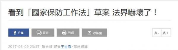 就在今年年初,隨着所謂的“共諜案”,台灣“調查局”就適時提出“保防法草案”出來,要求個政府機關和核電廠,高科技產業和影響“國家”安全利益相關產業,必須設立保防室或保防員。關鍵就在於,只要是保防員發現可疑對象,在取得機關首長的統一後,即可調閲相關的任何文件和資料。其中還特意指定“防泄密條款”,反是泄露保防員身份和資料的,可判處七年徒刑。