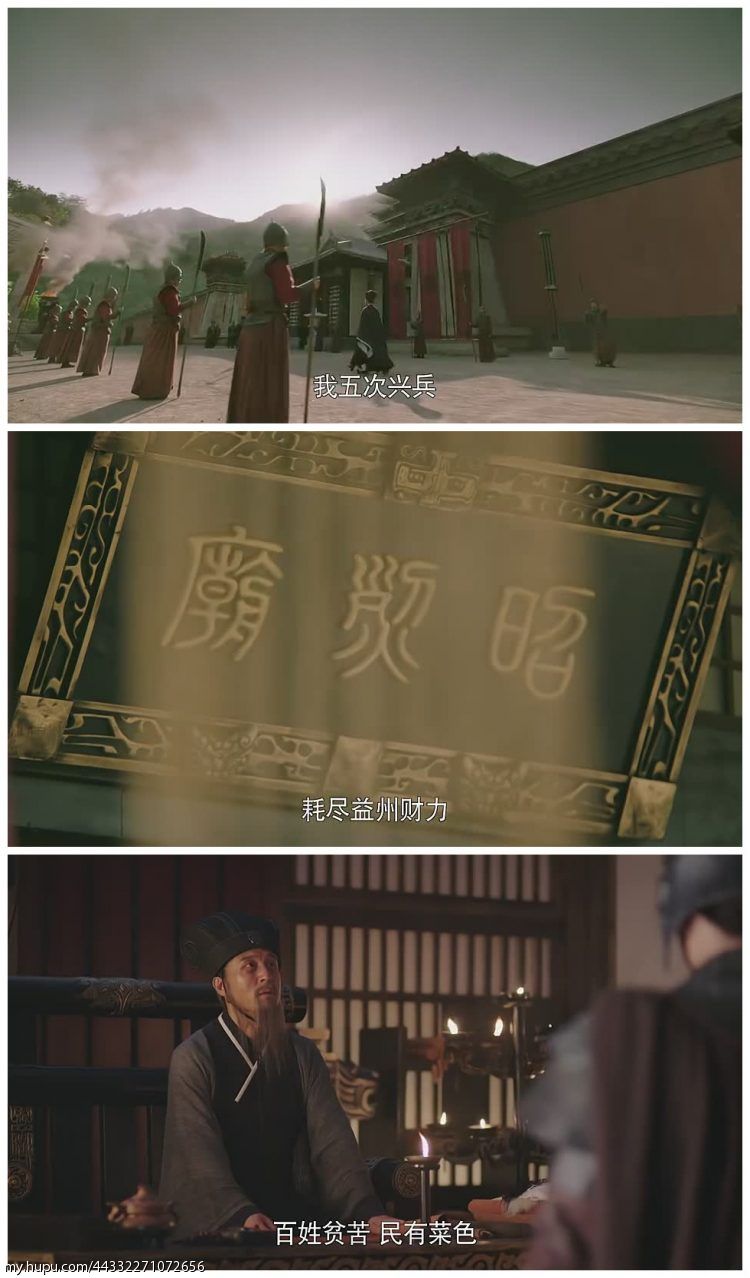 更過分的,還在後面。劇中,諸葛亮在死前“悔過”,説自己五次興兵,勞民傷財,百姓面有菜色。