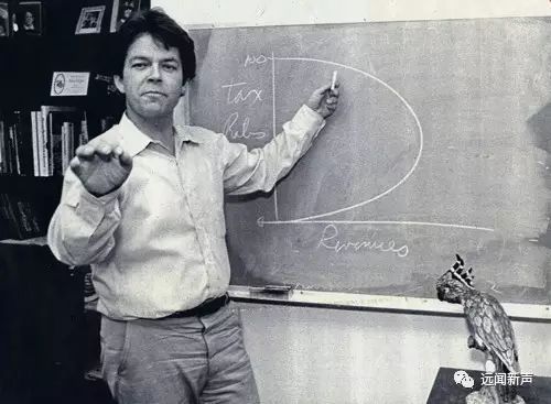 這是當時斯坦福大學一名叫阿瑟·拉弗的教授畫的一個曲線。這個拉弗曲線假設,如果一個國家的税收是100%的話,那麼這個國家的人將不會再生產,因為所有的東西都被國家拿走了。因此,如果税收沒有的話,人的積極性會更大。但國家總需要一些開支,需要税收,所以他就畫了一條曲線。這個曲線説明,實際上國家應該減少賦税,因為減少賦税,人民就有積極性投資、生產、消費。有這樣的積極性之後,就等於將經濟的盤子做大了,國家反而會因此得到更多的税收。