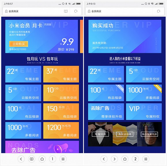 包年則能得到37套專屬主題、10GB雲服務空間、150元/月有品福袋、1200書幣/月(多看閲讀)。