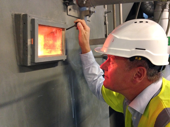 垃圾焚化站工作人員在檢查垃圾焚化情況