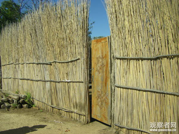 村中沒有津巴布韋那樣的圓錐型茅草土房,這裏的房子都是方形的,建造的質量有好有差。根據材料質量,大致可以分為三個等級。最低等的是泥土作牆的,中等的是石頭壘砌的牆,最上等是磚頭水泥牆。這些房子的門窗多數是預製的鐵框架,房頂極少用茅草,多數是用鐵皮或者水泥預製板,院牆籬笆倒是用茅草,用的是島邊淺水中生長的類似蘆葦的茅草。