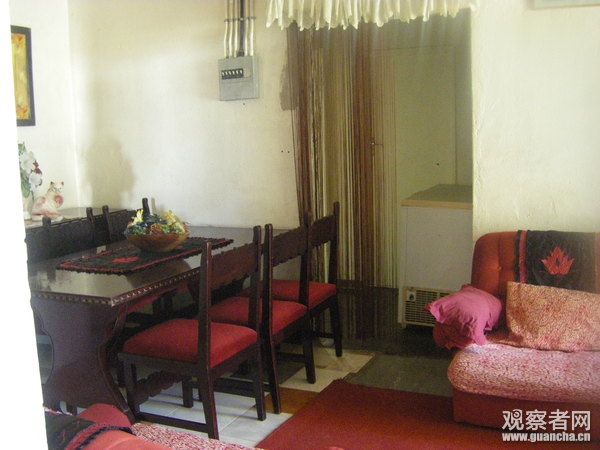 房子外表看起來很簡陋,但屋裏的傢俱設備卻相當不錯,有雕花大餐桌,有幾套沙發,還有電視、音響等不少電器。廚房中用的是現代化的電爐灶,還有冰箱、微波爐、電攪拌機等等。浴室也是現代化的,有抽水馬桶、熱水浴盆等設備。