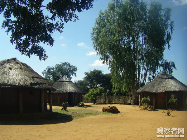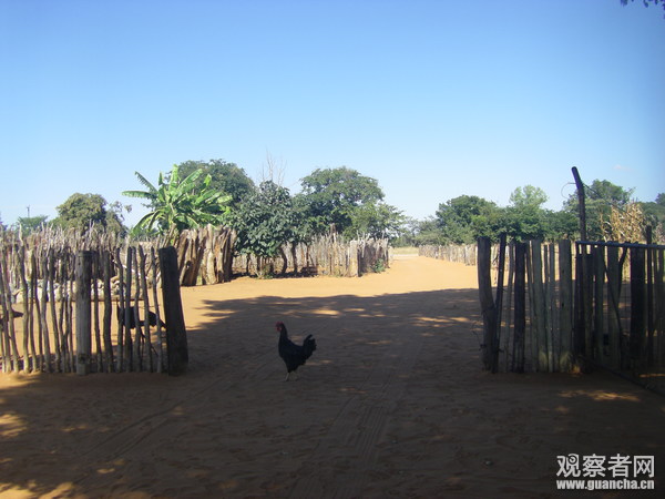 這是津巴布韋一户農民的茅草屋家院,他們沒有在土改中分到土地,仍然住在保留地中。這個院子中住着一家族14口人。