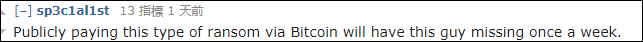 “要求用比特幣作為贖金的交易方法公佈了之後,這傢伙大概以後要每週消失一次了”