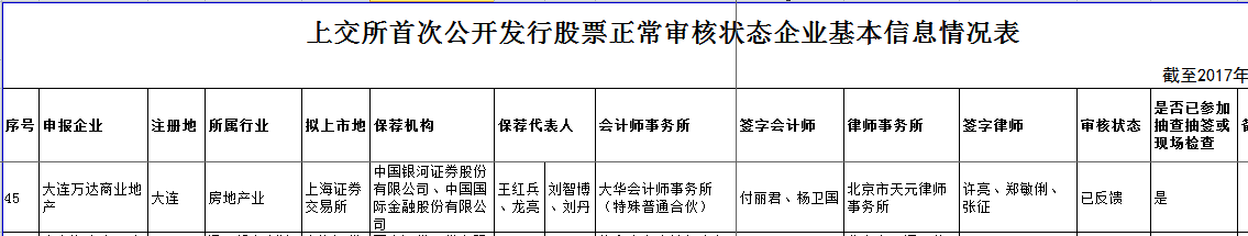 萬達目前的IPO狀態,排名第45位