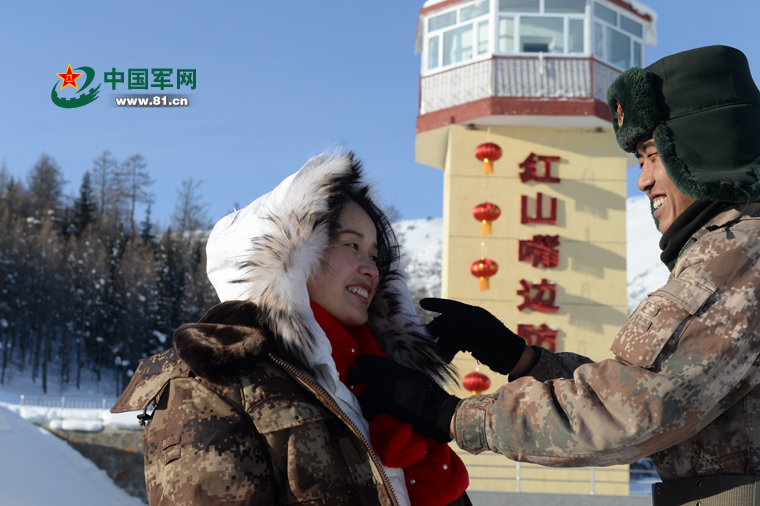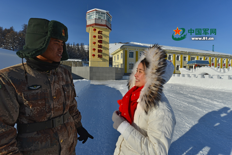 高婷搭乘為哨所運送年貨的直升機來到紅山嘴邊防連,給正在執勤的男朋友張海鵬一個意外的驚喜。岱天榮攝