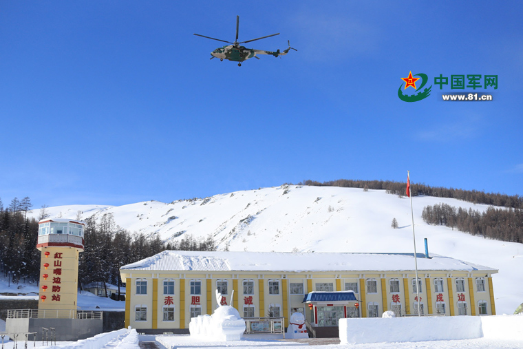 紅山嘴邊防連每年10月份至來年5月份大雪封山,封山期長達8個月,是全軍封山期最長的連隊,被譽為“雪海孤島”。由於大雪封山期長,冬季補給困難。春節前夕,為了讓邊防官兵過上一個歡樂、祥和、安全的春節,新疆軍區決定派直升機為哨所官兵運送新鮮蔬菜、海鮮等生活物資。