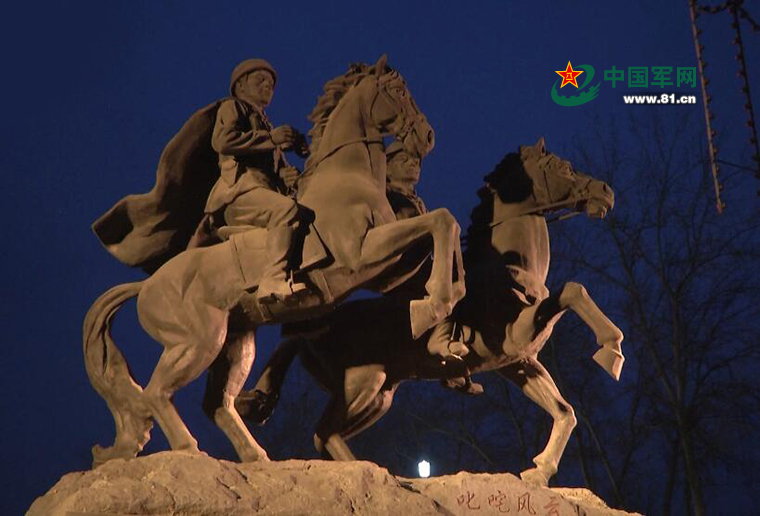 除夕,夜幕降臨,華燈初上。當留守在這座營盤的軍嫂們走過這座雕像,她們的思念飛向了遠方……