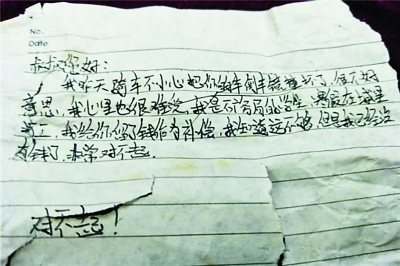 中學生撞寶馬車留道歉信賠311元 車主送他1萬元