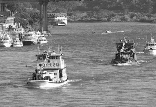 “一級勤務!”“槍彈結合!”14時33分,編隊抵達相撈上灘。船上氛圍變得緊張起來,對講機不時傳來命令。