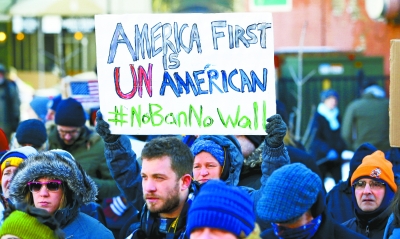 正是在美國人口結構發生歷史性變化的大背景下,特朗普作為共和黨的總統候選人,着眼鞏固白人的長期統治地位,採取把爭取草根白人選民作為重點的競選策略,強烈主張收緊移民政策,不僅要求嚴控新移民入境,公開呼籲在美國和墨西哥邊境建造隔離牆,阻止墨西哥等拉美移民入境,而且決心對已在美國居住的新移民身份重新進行復查,並將有犯罪記錄的非法移民遣返回國。由於嚴控移民入境本質上具有維護白人長久統治這一長遠戰略意圖實屬“天機不可泄露”,為掩人耳目,減少阻力,爭取支持,特朗普把其苛刻的移民政策披上了防止恐怖分子等壞人入境、維護國家安全的美麗外衣。因此,特朗普上任後出台的“入境限令”與其有關移民政策的競選言論是一脈相承的。