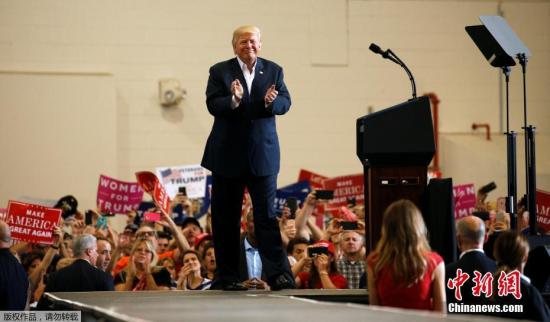資料圖:當地時間2017年2月18日,美國佛羅里達州墨爾本,美國總統特朗普在奧蘭多-墨爾本國際機場舉行演講。