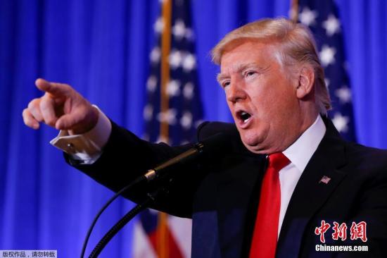 資料圖:當地時間1月11日,美國候任總統特朗普在紐約舉行競選成功以來首次新聞發佈會。