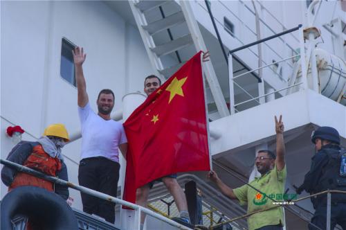 中國軍網亞丁灣4月11日電 李維、牛雲海報道:當地時間4月11日上午10時40分許,中國海軍第25批護航編隊玉林艦,將此前被武力營救的圖瓦盧籍OS35號貨船護送至也門亞丁港附近的安全海域。