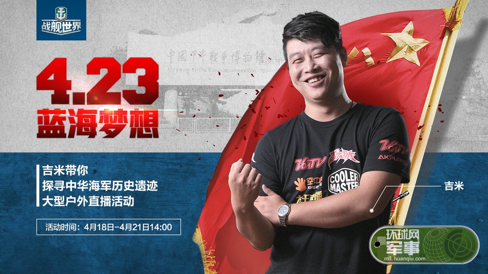 4月18日—21日期間,空中網通過大王直播以户外直播的方式,帶大家參觀北洋水師旗艦“定遠號”一級鐵甲艦,前往中國甲午戰爭博物館,並親自踏上“基輔號”,實景、實地探索中國海軍歷史,代領大家深入解讀中國海軍的傳奇發展。