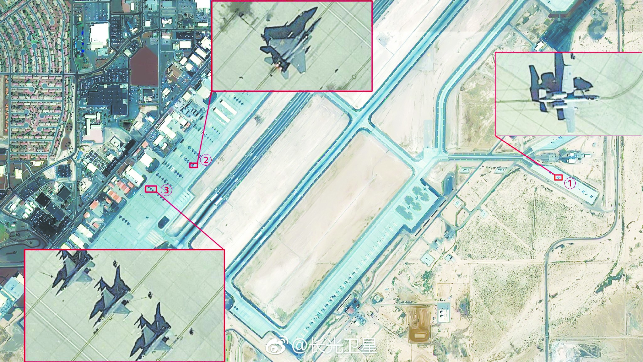 【環球網軍事5月22日報道 】日前,曾因曝光美國海軍造船廠航母衞星圖片而受到關注的一家中國商用遙感衞星公司又在網上火了一把,這次他們以“中國人自己造的衞星吉林一號衞星給你看戰鬥機”為題,把美國空軍基地的6組高清衞星照片公開發布在自身官微和微信公眾號上。