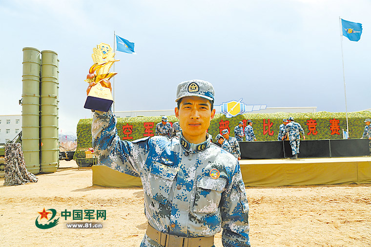 預賽第一、決賽第一,比武剛剛開始,王一已將一枚“藍盾尖兵”獎牌收入囊中。這可是1500餘名官兵參賽爭奪的36枚“藍盾尖兵”獎章啊!在隨後的防空導彈裝退、夜間緊急機動作戰、輕武器射擊、五公里武裝越野等課目考核中,王一奪得防空導彈裝退滿分,成為空軍“金盾牌”比武中唯一的“雙料王”。