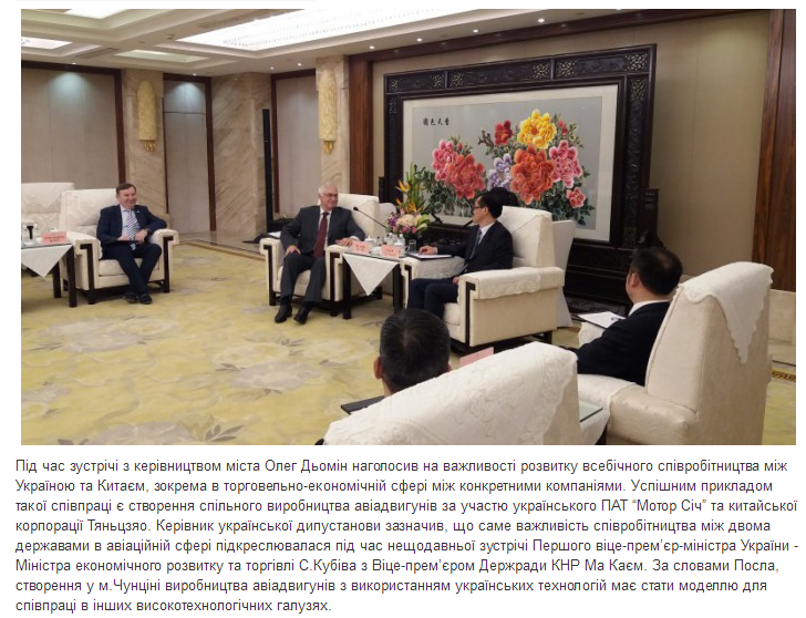 【環球網軍事-航空6月7日報道】據烏克蘭駐華使館2017年6月6日網站消息, 6月2日,烏克蘭駐華大使焦明先生訪問重慶,與重慶市領導會談並訪問了天驕航空重慶產業基地(重慶基地)。焦明大使在與重慶市領導會談中表示,烏克蘭政府對中烏合作航空發動機項目的高度重視,希望重慶市繼續大力支持,使天驕項目成為中烏合作的典範。烏克蘭大使館在其官方臉書上也發佈了該消息,烏克蘭國家通訊社和烏克蘭國內其他媒體也報道了此事。