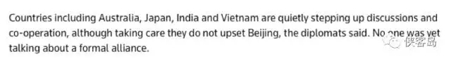 值得一提的是,部分美國盟友和地區國家正在試圖建立一個小型非正式聯盟,以應對急速轉變的戰略秩序。日本、澳大利亞、印度和越南開始着手進行安全合作談論,而英國、澳大利亞、新西蘭、馬來西亞和新加坡組成的五國聯防也正重新活躍起來。